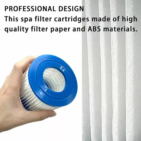 CONCEPTION PROFESSIONNELLE – Ces cartouches filtrantes pour spa sont fabriquées à partir de papier filtre de haute qualité et de matériaux ABS qui peuvent filtrer même les plus petits cheveux, feuilles, poussière, les sédiments, le sable, etc., assurent un flux constant d’eau propre, améliorent les performances de la pompe de votre piscine.