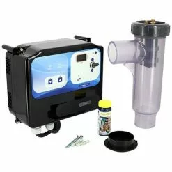 Electrolyseur au sel de fabrication française pour les piscines privées. Conception compacte pouvant être installée dans pratiquement n’importe quel bâtiment ou maison en fibre, avec des électrodes à longue durée de vie.