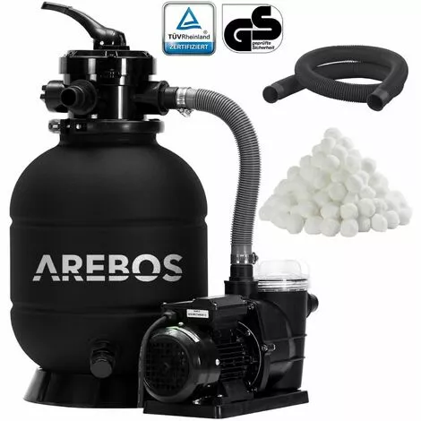 Le système de filtration à sable AREBOS filtre l’eau de votre piscine au moyen de billes filtrantes synthétiques qui peuvent être lavées puis réutilisées immédiatement. Alternativement,