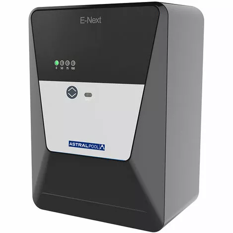 fiter plusE-Next se charge de désinfecter automatiquement votre piscine, et ce jusqu’à des bassins de 180 m³, vous laissant plus de temps pour vous relaxer.Un concentré de technologieLe design compact de l’E-Next lui permet d’être installé dans la plupart des locaux techniques, même les plus humides grâce à son co