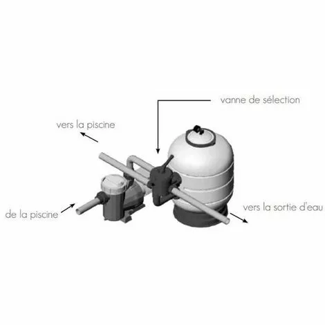 Filtre à sable Lamiperle Side Ø600. Corps en polyester et fibre de verre haute résistance. Vanne latérale 6 voies incluse. Débit 14m³/h. – – – –