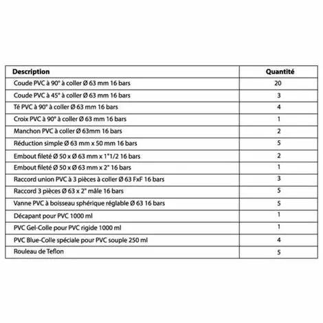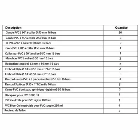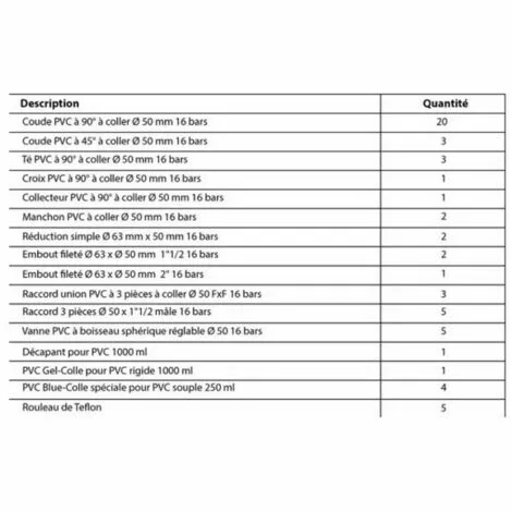 Kit complet de raccordement PVC Ø50 mm PN-16 pour piscine. – – – –
