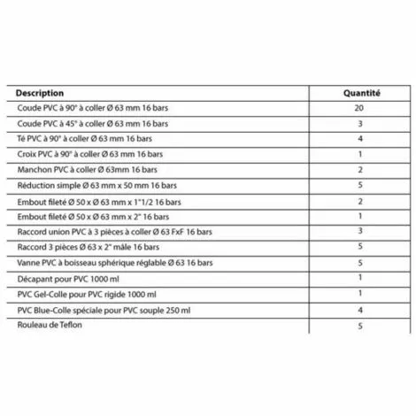 Kit complet de raccordement PVC Ø63 mm PN-16 pour piscine. – – – –