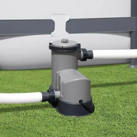 La pompe de filtration fait circuler l’eau de la piscine de l’intérieur vers l’extérieur, à travers une cartouche filtrante, et la rejette à nouveau. La pompe Bestway® comprend deux tuyaux situés à deux endroits différents de la piscine. L’extrémité du tuyau est raccordée à l’entrée de la pompe de filtration et l’extrémité de l’autre tuyau est insérée dans une douille. L’eau est pompée hors de la piscine par le tuyau d’entrée avant d’être désinfectée par la cartouche filtrante et pompée par le tuyau de vidange. Le cycle recommence son voyage en fournissant de l’eau propre et limpide. La pompe de filtration Bestway® Flowclear™ de 5 678 L est livrée avec un manuel d’instructions qui guide l’utilisateur à travers la procédure d’installation, relativement simple. Recommandée pour les piscines de 1 100 à 31 700 L, la cartouche anti-microbe est incluse. Les raccords de piscine ont un diamètre de 32 et 38 mm.