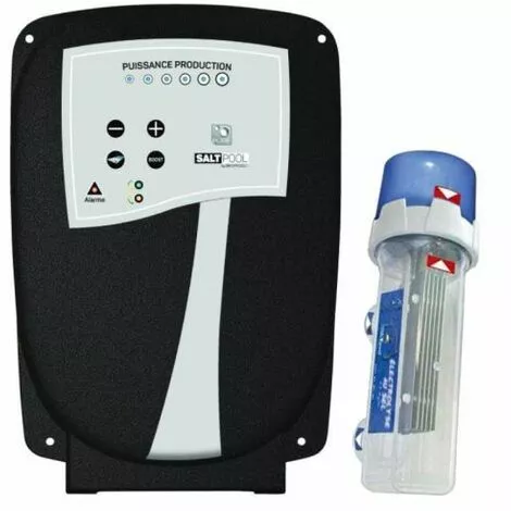 Électrolyseur au sel Bio-Pool Salt Pool 10, pour piscine jusqu’à 40 m3.Excellent rapport qualité/prixConçu et fabriqué en FranceInversion de polarité automatiqueProduction : 10 gr/hFonction « volet roulant »Garantie : 2 ans