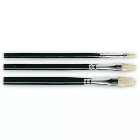 Pinceau orné de soies de Chine blanches à long manche en bois peint en noir virole nickelée.
