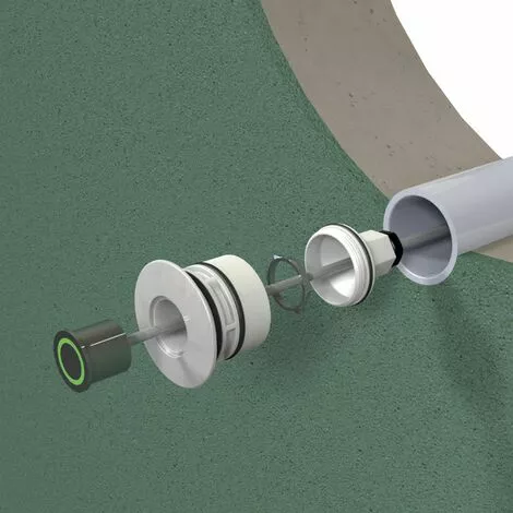 Traversée de paroi encastrable pour bouton Piezo, compatible avec les piscines béton.
