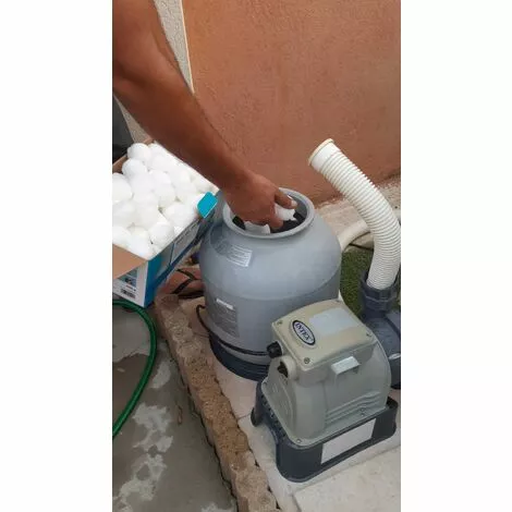 Les balles filtrantes de la marque Summer Fun remplacent la cartouche de sable ou le sable filtrant conventionnel dans votre système de filtre à cartouche ou à sable.Les balles filtrantes sont beaucoup plus fines que le sable filtrant ou le sable de quartz et filtrent ainsi les petites particules de saleté de l’eau.700 g de balles filtrantes = 25 kg de sable filtrant.Avantages :Plus léger et plus efficace que les moyens filtrants classiques.Compatible avec tous les systèmes de filtration à sable courants.Facile à utiliser.Moins de temps de rinçage et facile à jeter.Grande capacité d’absorption de la saleté.Il suffit de remplacer le sable contenu dans le filtre contre les balles filtrantes et le nettoyage de l’eau de la piscine peut commencer.