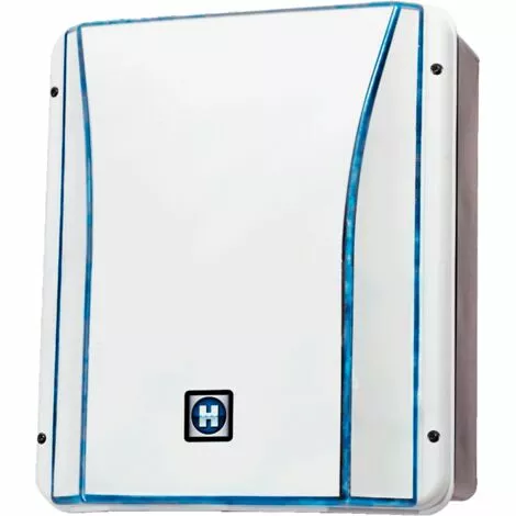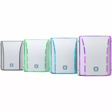 Nouvelle génération. Multiples productions de chlore disponibles: 8, 16, 22 y 33 grs. Cl₂/h.. Configuration intuitive de la production, grâce à son écran LED et contrôle visuel de la production, à travers de la cellule d’électrolyse transparente. La production peut se régler facilement:: 20, 40, 60, 0 ou 100%.