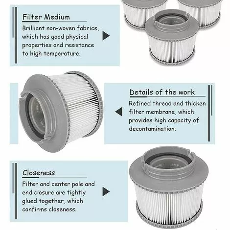 Facile nettoyer et bactries difficiles reproduire : le filtre de piscine de massage est fabriqu en papier Dacron facile nettoyer et rsistant, la salet peut tre lave facilement. Et ce filtre est difficile produire des bactries, de sorte que la pollution secondaire a t vite. La cartouche filtrante de rechange MSpa limine la salet et les germes et garantit une eau propre et frache. .