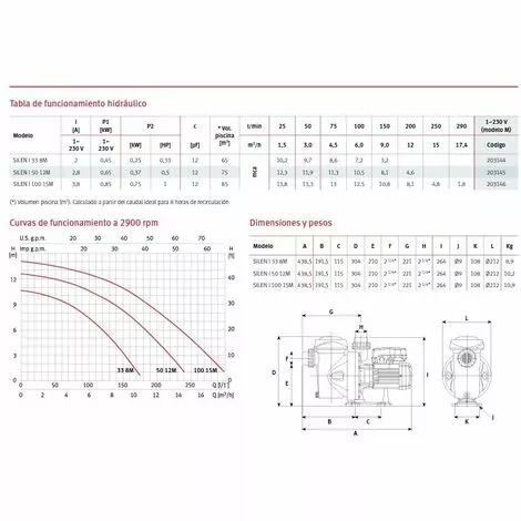 Nouvelle série SILEN I 33 8M, auto-amorçante à 4 mètres et ultra-silencieuse. Corps de pompe, pied, roue, support de joint et diffuseur en polypropylène. Arbre moteur en acier inoxydable AISI 431. Garniture mécanique spéciale en AISI 316. Boîtier du moteur en aluminium. Joints et roulements en NBR jusqu’à 160 ºC.