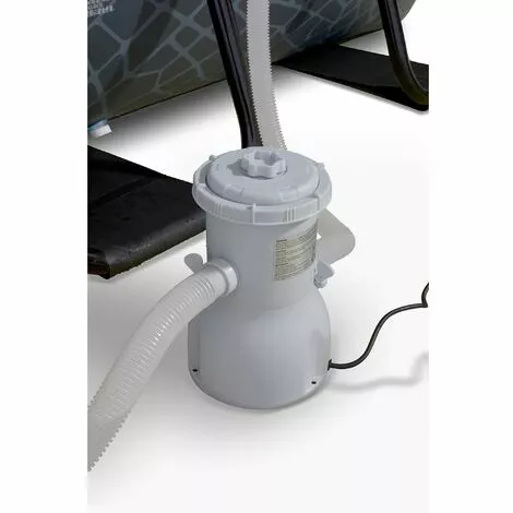 La pompe filtrante pour piscine EXIT, d’une capacité de 530 gal / h, filtre les saletés de l’eau de piscine et permet ainsi de la maintenir propre. Cette pompe filtrante à cartouche est adaptée aux piscines EXIT de 400 x 200 centimètres. Elle fonctionne sur 12 volts et sa capacité de filtration est de 2006 litres. Tu veux avoir une piscine propre ? La pompe EXIT filtre les saletés, telles que les insectes, les feuilles et le sable, afin de maintenir l’eau propre.L’eau entre et ressort de la piscine grâce au tuyau fourni. L’eau entre dans la pompe par le tuyau, où elle est ensuite filtrée, puis renvoyée par le tuyau dans la piscine. Prend en compte les 2 mètres de câble d’alimentation, pour l’emplacement de la pompe filtrante.La pompe filtrante est adaptée pour des cartouches de format ø 10,6 x 13,6 centimètres. Pour de meilleurs résultats, nous conseillons de changer les cartouches du filtre tous les 7 jours. Nous fournissons une cartouche filtrante avec la pompe EXIT.