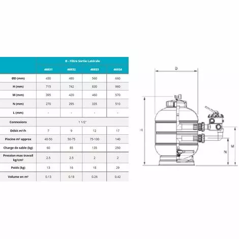 – Purge d’air manuelle intégrée au corps du filtre pour une vidange aisée, sans perte de sable.