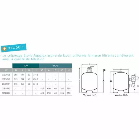N’hésitez plus et commandez vite le filtre à sable type TOP Ø 515 mm 10m³/h