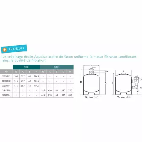 N’hésitez plus et commandez vite le filtre à sable type TOP Ø 615 mm 14m³/h