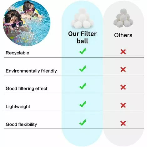 【Boules de Filtre Réutilisables de Piscine de Largement applicable】: Notre Balles Filtrantes est universellement applicable à presque tous les nettoyeurs de piscine dans des réservoirs filtrants. Il convient également aux pompes de filtration à sable en eau salée. Largement utilisé dans les piscines, les aquariums, les pompes à filtre, le sable filtrant et autres médias.