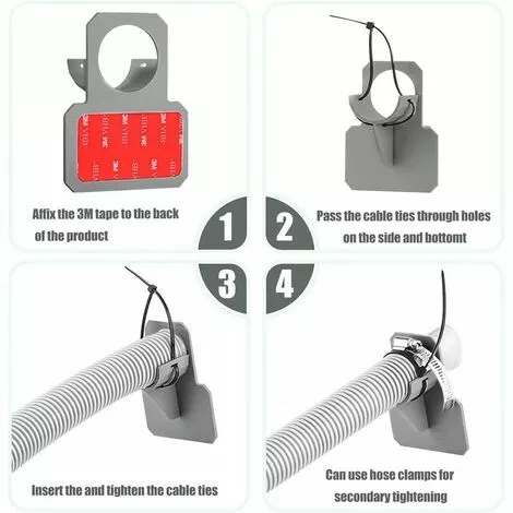 VOUS OBTIENDREZ — 2 supports de tuyau de piscine en matériau ABS, 4 attaches de câble pour fixer le tuyau, 2 morceaux d’autocollants adhésifs 3M pour fixer le support de tuyau au raccord de tuyau d’eau à l’extérieur de la piscine.