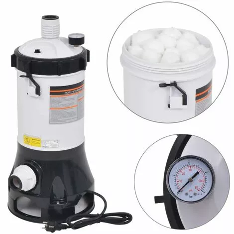 Cette pompe de filtration a été con?ue pour garder l’eau de votre piscine propre. Elle est livrée avec 100 billes filtrantes. La pompe de filtration a un débit de 4,4 m3 / h. Elle a un réservoir durable et résistant à la corrosion. Les billes filtrations en coton incluses filtreront efficacement même les plus petites particules. Elles sont légères et plus faciles à gérer que d’autres milieux de filtration comme le sable. L’efficacité des billes filtrantes de 550 g est équivalente à celle de 20 kg de sable filtrant. Les billes filtrantes nécessitent également une pression de travail plus faible, ce qui réduit la consommation d’énergie. La pompe de filtration est équipée d’un manomètre facile à lire. La pompe de filtration convient aux piscines Intex et Bestway. Veuillez noter que le tuyau de raccordement n’est pas inclus dans la livraison.