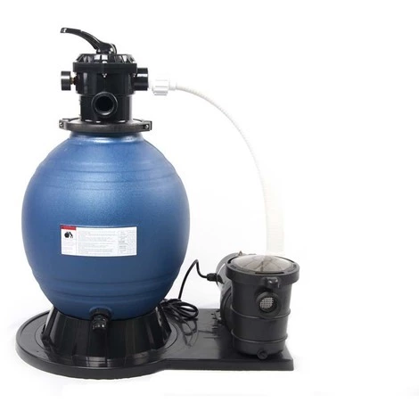 Groupe de filtration à sable complet 8.3 m3/h – Pompe 1,35 cv avec préfiltre – Cuve diam. 460 mm – Vanne 6 voies – Eléments de raccordement – Socle – Montage rapide et simpleGroupe de filtration à sable complet – 8.3 m3/h