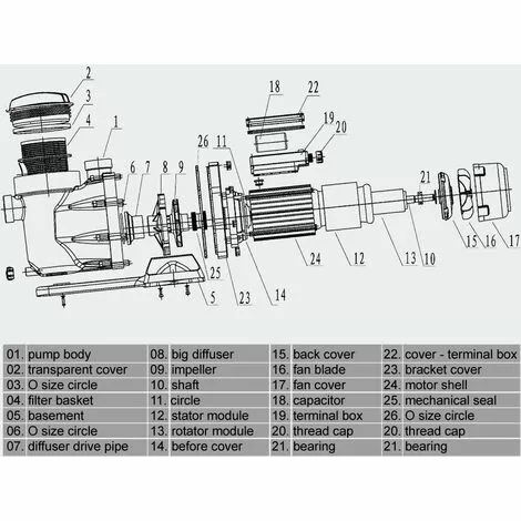 Le moteur et l’arbre de la pompe ne sont pas en contact avec l’eau de la piscine.
