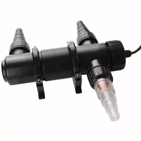 Ce dispositif de décantation UVC assure la clarté de l’eau de l’étang avec des poissons en bonne santé. Il peut être installé et entretenu facilement. Le dispositif UVC agit contre les pathogènes. Un support mural et une lampe sont également inclus. Ce produit peut être combiné avec notre filtre de bassin biologique.