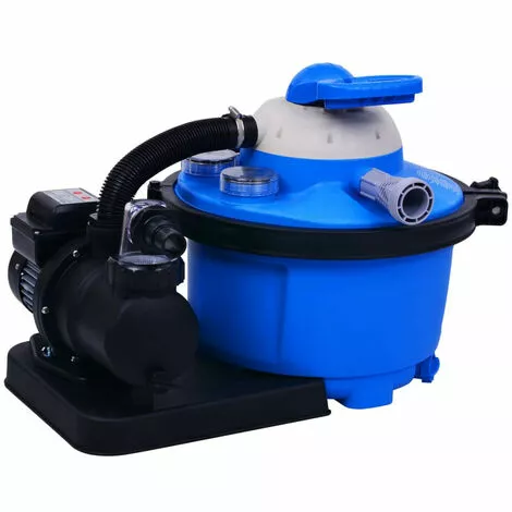 Couleur : bleu et noirMatériau : plastiqueDimensions : 385 x 635 x 432 mm (l x P x H)Alimentation : 230 V ~, 50 HzPuissance : 450 WDébit : 8,5 m³ / hVolume du réservoir : 25 litresDiamètre du godet : 385 mmNiveau IP : IP5Pression de fonctionnement maximale : 1,5 barsTempérature ambiante appropriée : 0-35 ° CMinuterie intégréeAvec un pré-filtreSurface de filtration : 0,13 m2Nécessite 15 kg de sable ou 700 g de billes filtrantes (non inclus)Vanne à 7 voies : filtrer, rincer, faire circuler, laver à contre-courant, fermer, vidanger, hivernerCompatible avec des tuyaux d’un diamètre de 32 mm ou de 38 mmConvient aux piscines hors sol (par exemple des marques Intex et Bestway )L’assemblage est requisLa pompe de filtration est basée sur un système de filtration naturel : l’eau est pompée dans un réservoir contenant du sable de silice qui absorbe les impuretés et les particules pour produire de l’eau propre. Le panier de la crépine du préfiltre est un mécanisme supplémentaire qui filtre pour capturer les particules plus grosses telles que les feuilles, les cheveux et la saleté. Elle protège également la turbine de votre pompe et aide votre pompe à fonctionner en continu régulièrement. Cette pompe à filtre comprend une vanne à 7 voies, qui peut être ajustée dans différents paramètres pour filtrer l’eau de la piscine, fermer (arrêt du débit d’eau), laver à contre-courant (pour nettoyer le lit de sable), rincer (pour le démarrage initial, nettoyer et niveler le lit de sable), vider l’eau de la piscine, circuler l’eau de la piscine et hiverner pour le stockage hors saison. Grâce au boîtier en plastique renforcé, cette pompe de filtration pour piscine garantit des performances tout temps, offrant une durée de vie à long terme. La minuterie intégrée vous permet de définir une période de fonctionnement automatisée. Elle convient aux piscines hors sol, telles que celles des marques Intex et Bestway. Veuillez noter : le sable et les billes de filtration ne sont pas inclus dans la livraison.Nous ne livrons pas en Corse.