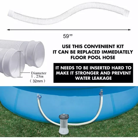 Le tuyau fonctionne avec toutes les pompes a filtre pour 330 GPH, 530 GPH et 1 000 GPH. Facile a utiliser, compatible avec les pompes a filtre 607, 637 et de nombreux modeles.