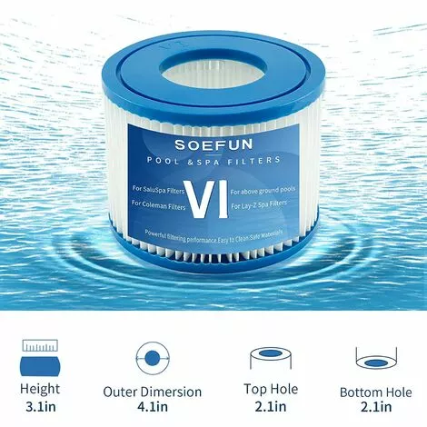 Le filtre spa de type VI est compatible avec SaluSpa Bestway, pour Coleman, pour Lay-Z-Spa, pour Intex, 90352E 58323E