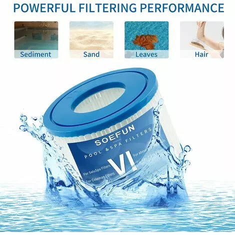 Facile à nettoyer : les cartouches de filtre de piscine de type VI sont fabriquées à partir de matériau Dacron (le nettoyage est effectué en rinçant la cartouche avec un tuyau). Elles sont faciles à nettoyer.