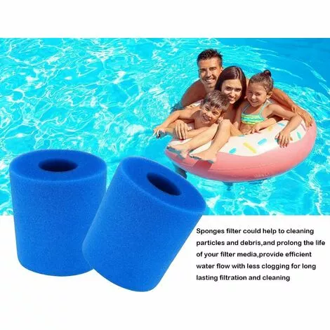 OUSUDELA Éponge De Filtre De Piscine Compatible Avec In-tex Type H, Filtre à Cartouche D’éponge Réutilisable Et Lavable Pour Hydromassage De Spa De Jacuzzi De Piscine 2 Pièces Bleu