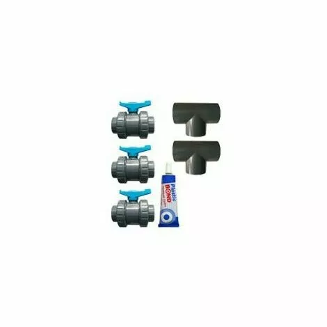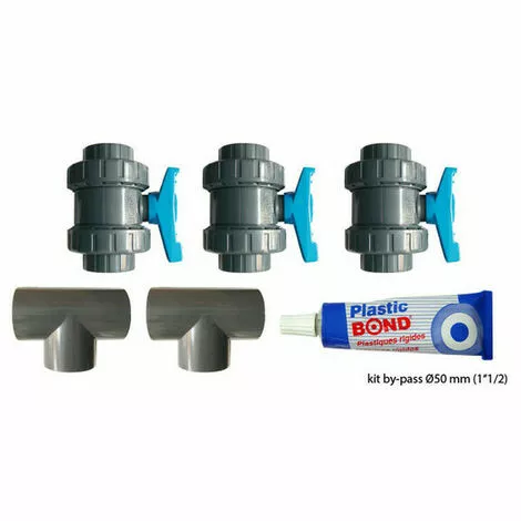 Le kit-pass ø 50 mm comprend : 3 vannes ø 50 mm, 2 tés ø 50 mm et un tube de colle. – – – –