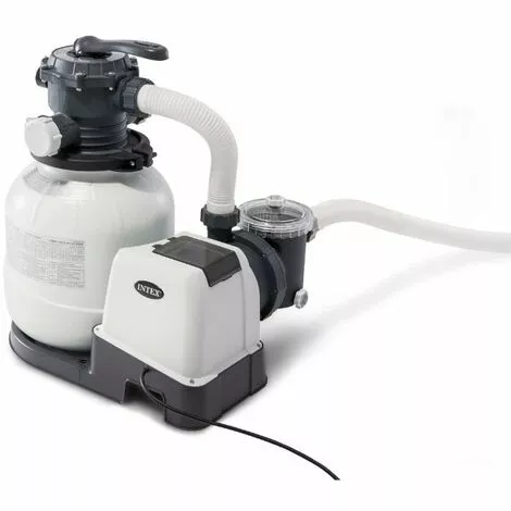 Si vous souhaitez doter votre piscine Intex de la technologie de filtration la plus performante, c’est la pompe de filtration qu’il vous faut, en fonction de la taille et de la résistance de votre piscine. Cette pompe à filtre à sable pompe jusqu’à 7 900 litres d’eau par heure. Cela rend la pompe de filtration à sable Intex adaptée aux piscines d’une contenance d’eau de 18 000 à 24 000 litres. Si vous avez des résistances telles qu’un système au sel et/ou une pompe à chaleur, gardez une capacité d’eau maximale de 18 000 litres. La pompe de filtration maintient l’eau de la piscine en mouvement, ce qui signifie que les algues, les bactéries et les champignons n’ont pratiquement aucune chance de se développer. Avant que l’eau ne s’écoule dans la pompe, elle passe à travers un pré-filtre. C’est là que le premier filtrage a lieu. Les feuilles et les gros débris sont filtrés hors de l’eau de baignade. L’eau pénètre ensuite dans le récipient du filtre où la saleté restante est retenue. Le récipient du filtre doit être rempli de sable ou de verre, qui n’est pas fourni avec la pompe. Le sable filtrant est le plus couramment utilisé, est le moins cher et doit être remplacé après environ 5 ans. Le verre filtrant est un peu plus efficace, un peu plus cher, il en faut moins et il suffit de le remplacer au bout de 10 à 15 ans.