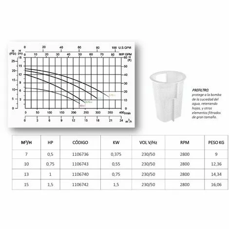 Monophasé. Pompes de 0,5 à 1,5 CV