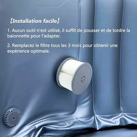 【Installation facile】 Aucun outil utilisé, il suffit de pousser et de tourner la baïonnette pour l’adapter. Il est recommandé de remplacer l’élément filtrant tous les 3 mois pour obtenir une expérience optimale.