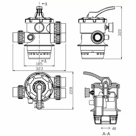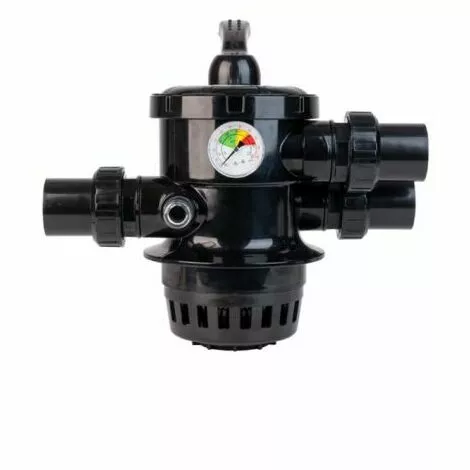 Cette vanne 6 voies + position « hiver » est l’élément principal de votre filtre à sable. Équipée d’un manomètre et d’un témoin de turbidité pour gérer au mieux les différents cycles de votre groupe de filtration.